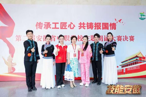 “传承工匠心 共铸报国情”主题朗诵大赛由中共安徽省委宣传部、安徽省教育厅、安徽省人力资源和社会保障厅主办,安徽省职业与成人教育学会、安徽万泉高教文化传媒有限公司承办,安徽省朗诵艺术学会指导的赛项,连续两年都吸引全省各地多所学校参与角逐,竞争激烈。比赛历时一个多月,设有片区选拔赛和总决赛。选拔赛有来自全省超过200所中职技工学校的333支队伍参与了激烈角逐,共有61个作品入围全省总决赛。淮北工业和艺术学校代表队以炙热的情感,高水平地诵读了参赛作品《大山的女儿》,生动地演绎了基层扶贫干部黄文秀的故事,感人至深、催人泪下,引发现场观众的强烈共鸣,最终取得全省一等奖。